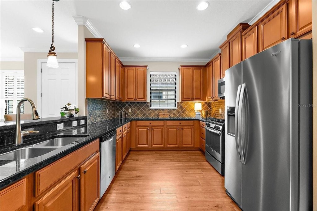 PRICED TO SELL! Resort-style living awaits in Esplanade Golf and Country Club of Lakewood Ranch! Welcome to effortless, maintenance-free living in one of the area’s most sought-after communities. Nestled on a private lot, this meticulously maintained Roma floor plan offers comfort, function, and style in equal measure. Designed with everyday living and entertaining in mind, the open-concept layout features 2 generously sized bedrooms, 2 full bathrooms, and a versatile office or den. The split-bedroom floor plan provides ideal privacy for guests while maintaining a natural flow throughout the home. At the heart of the home, the chef’s kitchen shines with 42" cabinets, crown molding, granite countertops, a tile backsplash, gas stove, stainless steel appliances, and a layout perfect for hosting. The kitchen seamlessly connects to the spacious great room and extends out to the private, oversized lanai—ideal for dining al fresco, relaxing with a good book, or entertaining family and friends. Unwind in the serene owner’s suite, complete with an oversized walk-in closet and a spa-like bath featuring dual sinks, a dedicated vanity, and a spacious shower. Upgrades to this home include crown molding, plantation shutters, luxury vinyl flooring (2025), fresh exterior paint (2025), a new refrigerator, and a new dryer—offering peace of mind and turnkey convenience. Living in Esplanade is like being on vacation every day. Enjoy world-class amenities including a resort-style zero-entry pool, resistance pool, state-of-the-art wellness and fitness center, and a vibrant 12,000 sq. ft. clubhouse. Sports enthusiasts will love access to pickleball, tennis, bocce, and kayaking. Golfers can enjoy the challenging 18-hole course with pay-to-play access. The lifestyle here is as social as it is relaxing, with a full-time lifestyle director coordinating clubs, events, and community gatherings. Treat yourself at the on-site salon and spa or indulge in the dining options at The Barrel House Bistro, the poolside Bahama Bar & Café, or attend cooking classes at the Culinary Center. Located within one of Lakewood Ranch’s most desirable master-planned communities, this home is close to top-rated schools and just minutes from UTC shopping and dining, SRQ Airport, downtown Sarasota, and the stunning Gulf Coast beaches. This home is more than just a place to live—it's a lifestyle you'll never want to leave.